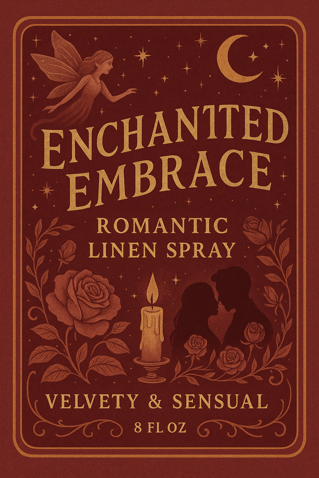 Wrap your space in the magic of love with Enchanted Embrace, a romantic linen spray designed to stir the heart and enchant the senses. This intoxicating blend of rose, jasmine, and sandalwood invites a sense of intimacy and connection, filling your home with an air of gentle seduction. Perfect for cozy evenings, special nights, or simply when you wish to surround yourself with love’s tender energy.