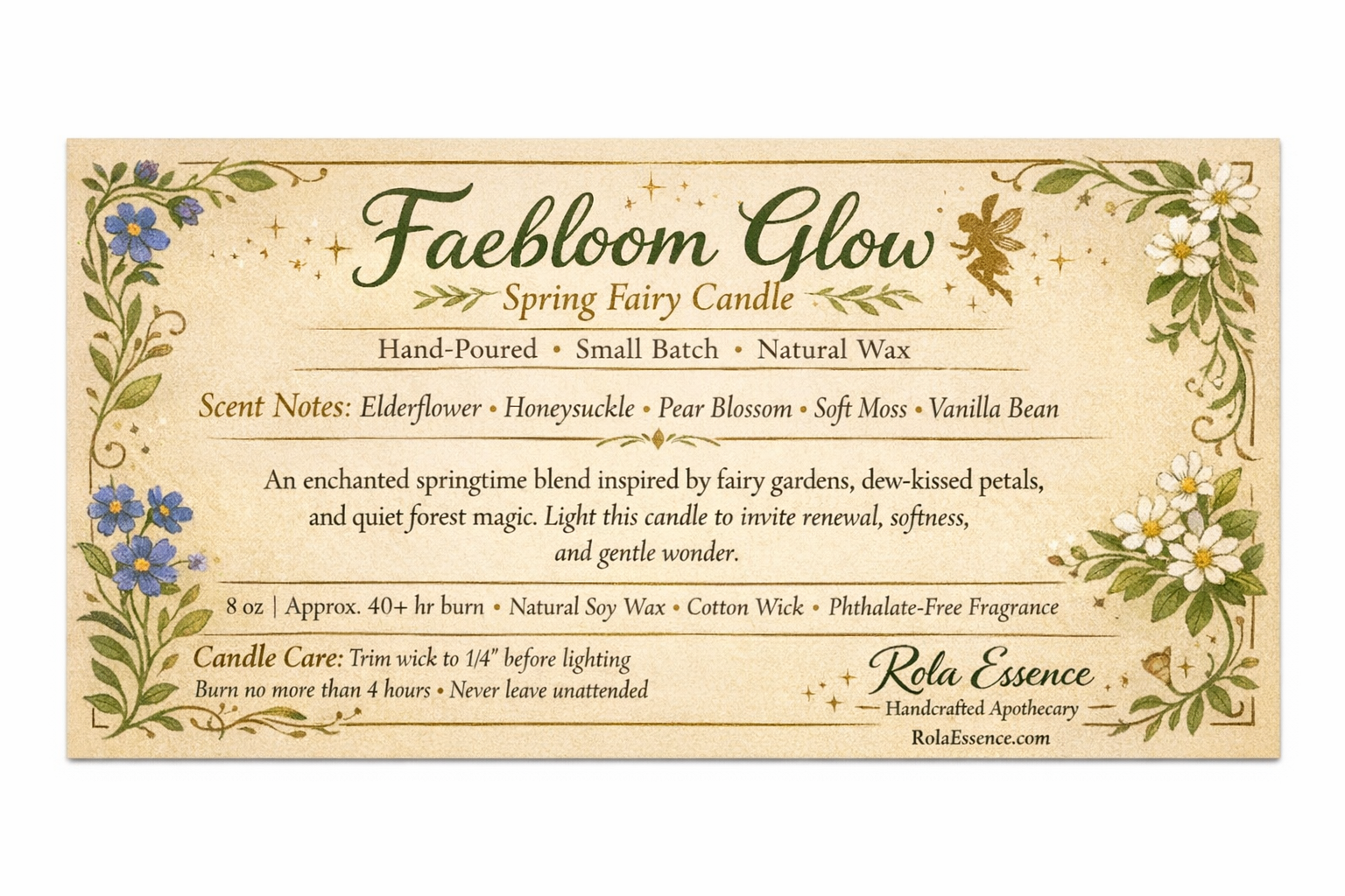 Hand-poured in small batches with natural soy wax, Faebloom Glow burns with a calm, luminous presence—perfect for moments of rest, creative rituals, or welcoming the renewal of the season. Each light invites softness, wonder, and a whisper of springtime magic into your space.