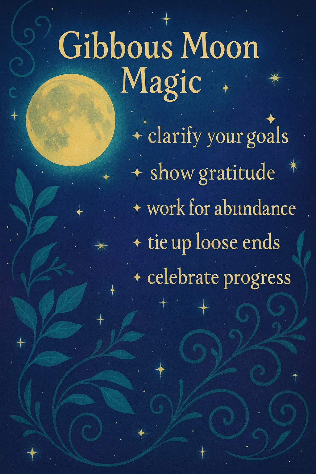 The moon glows bright and near to full—its light humming with promise and power. Gibbous Glow is crafted to mirror this luminous energy, a fragrant ritual for refinement, confidence, and creation.