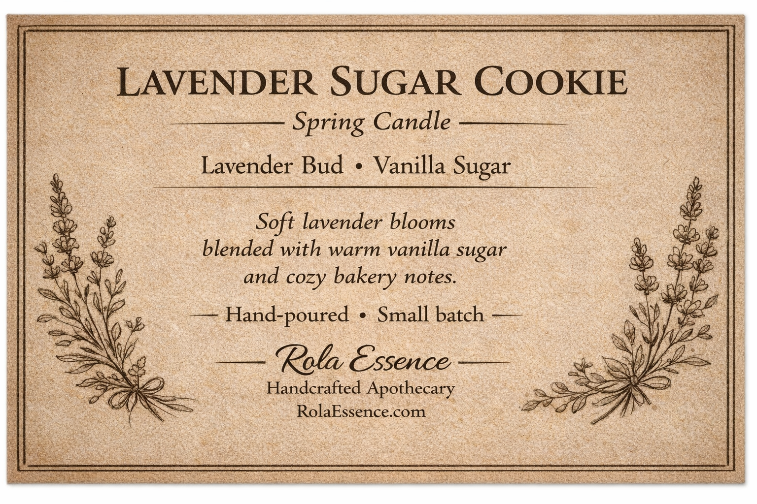 Soft, comforting, and delicately sweet, Lavender Sugar Cookie is a gentle springtime blend that brings together calming lavender buds and warm vanilla sugar with a hint of cozy bakery goodness. The floral notes are light and soothing—never sharp—while the vanilla sugar adds a familiar, comforting sweetness that feels homemade and nostalgic.