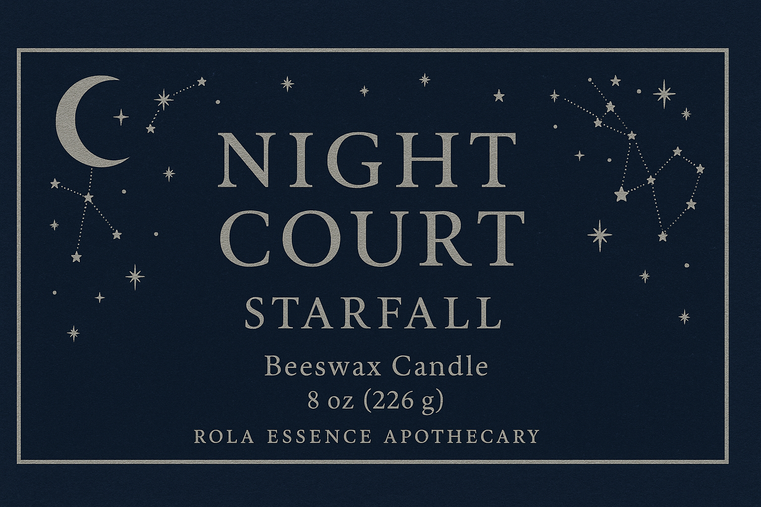 Slip into the velvet hush of Velaris at midnight. Night Court — Star Fall glows with sparkling citrus over night-blooming florals and resinous woods—mysterious, elegant, and a little bit spellbound. Hand-poured with pure beeswax and a touch of coconut oil for a smooth, clean burn, finished with a faint midnight-blue mica shimmer that twinkles like stardust.