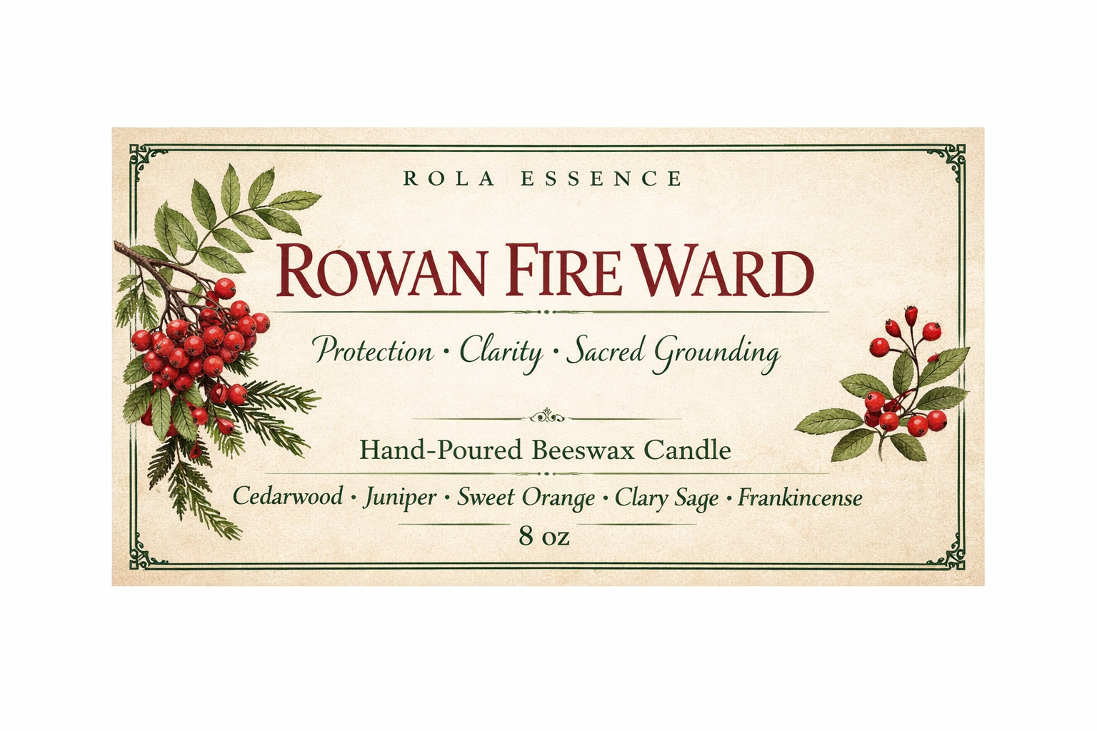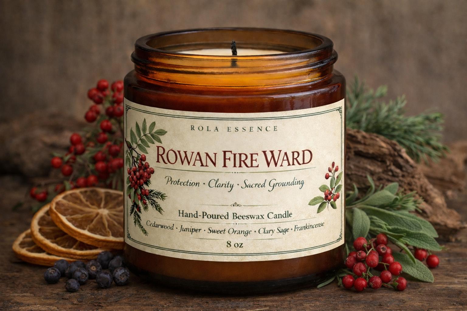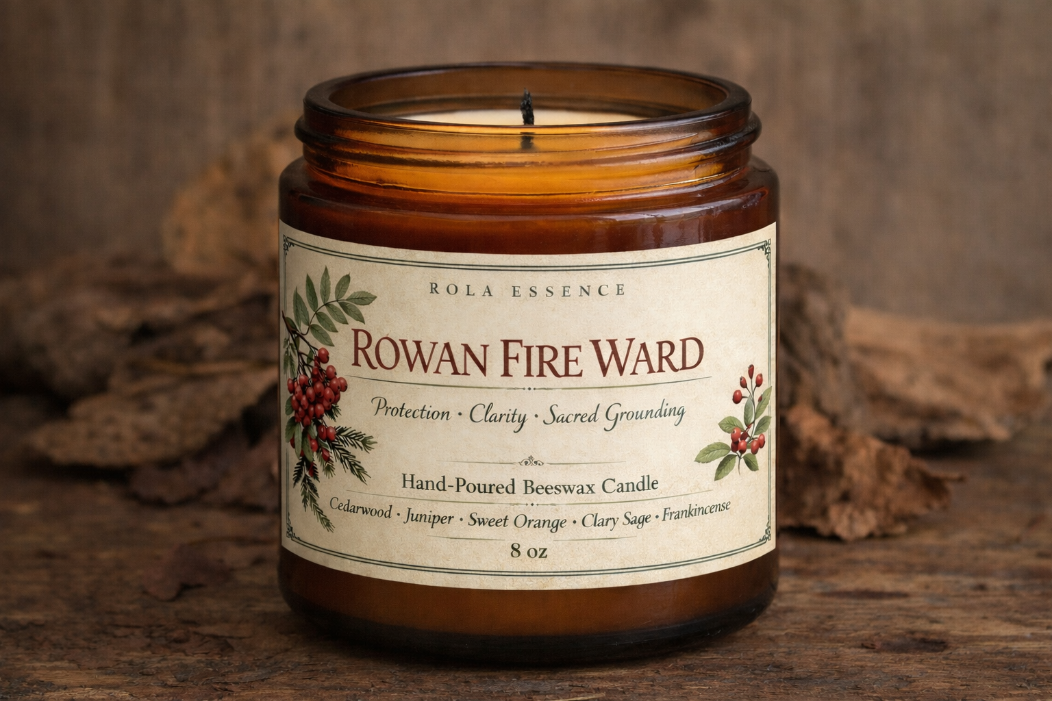 Rooted in the folklore of the ancient Rowan, Rowan Fire Ward is a small but mighty guardian for your space. Traditionally planted near doorways for protection, the rowan carries an energy of quiet strength, clarity, and spiritual shielding. This candle captures that woodland wisdom and seals it in warm, golden beeswax.