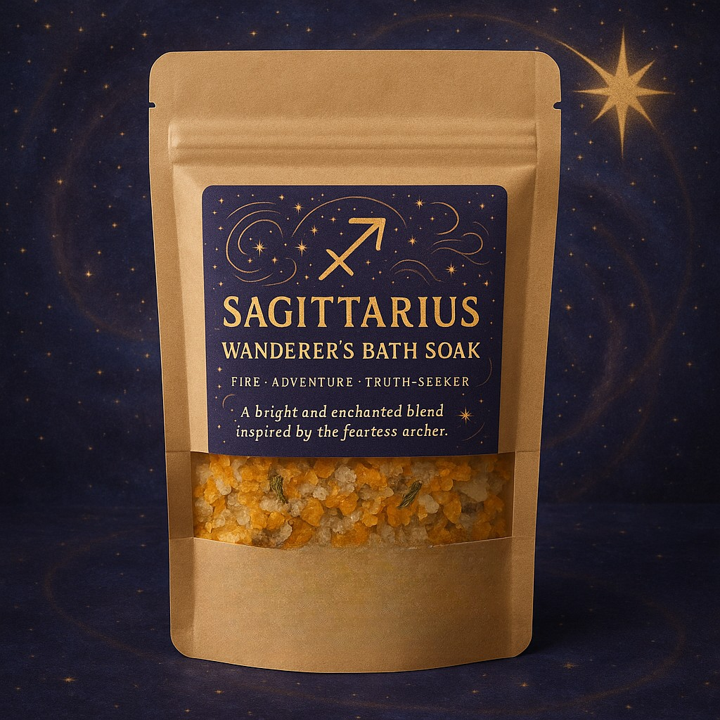 Perfect for: Sagittarius souls, fire-sign lovers, zodiac rituals, new moon baths, self-care nights, and anyone seeking a spark of wanderlust.