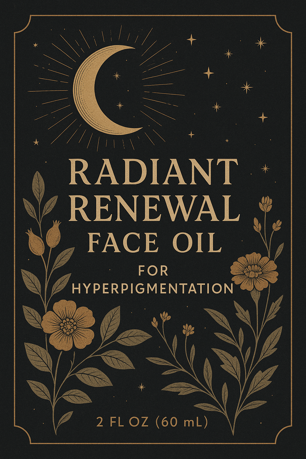 Illuminate your natural beauty with Radiant Renewal Face Oil, a handcrafted blend of skin-brightening botanicals and luxurious oils designed to fade hyperpigmentation and restore an even, moonlit glow.